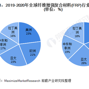 根据MaximizeMarketResearch的数据显示,美洲、欧洲和亚太地区是全球纤维增强复合材料(FRP)主要的市场规模集中地;2019年,美洲、欧洲、亚太分别占据全球市场规模的23%、21%和23%;而在2020年,由于新冠肺炎疫情的影响,美洲和欧洲的疫情反复导致纤维增强复合材料(FRP)行业发展受阻,占比分别下跌至19%和18%;而在亚太地区,由于中国防疫有效,使得纤维增强复合材料(FRP)行业较其他地区恢复较快,因此造成了亚太地区2020年市场规模占比达到了26%。