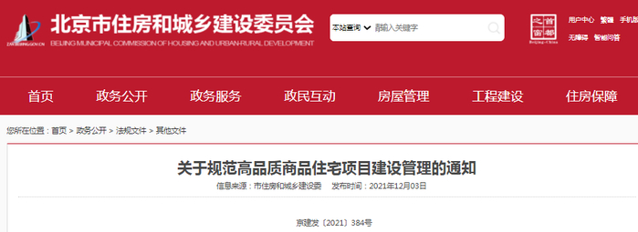 北京市住建委要求规范高品质商品住宅项目建设管理
