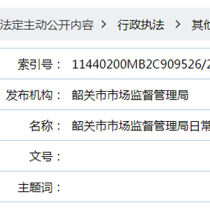 检查单位 | 韶关市市场监督管理局 | 检查日期 | 2021年11月8日 |