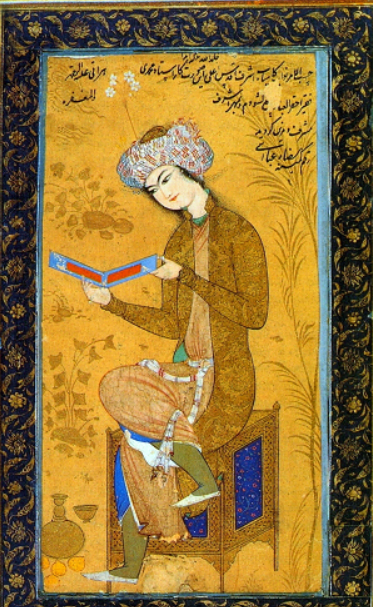 《阅读的青年》由礼萨·阿巴斯所作。礼萨·阿巴斯是萨法维王朝后期伊斯法罕学派的重要波斯细密画艺术家,被认为是波斯细密画的最后一位大师,其创作的以年轻人为主要主题的壁画或单幅画尤为著名。