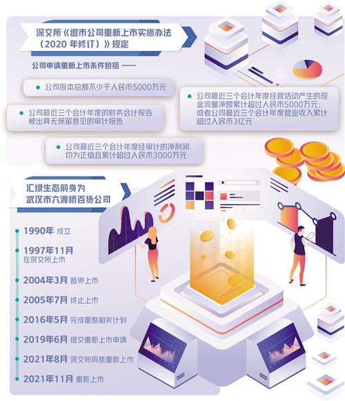 2019年6月19日,汇绿生态向深交所提交重新上市申请,深交所严格依法依规启动受理及审核工作。2021年8月20日,深交所依据相关规定和上市委员会审核意见,作出同意公司股票重新上市的决定。