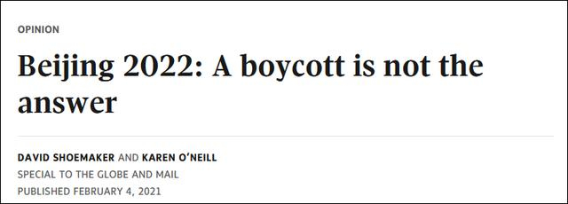 《环球邮报》今年2月刊发加奥委会高官文章:抵制北京冬奥可不是个好答案