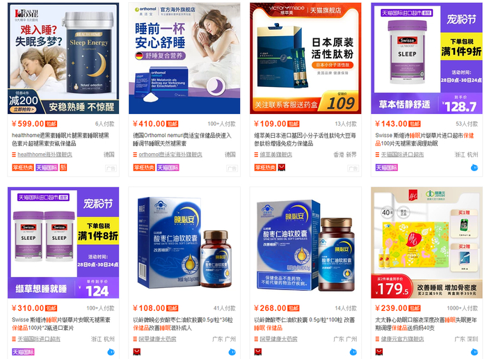 在睡眠类保健品方面,根据界面记者在某电商平台的搜索结果,睡眠类保健品大致可分为三类。