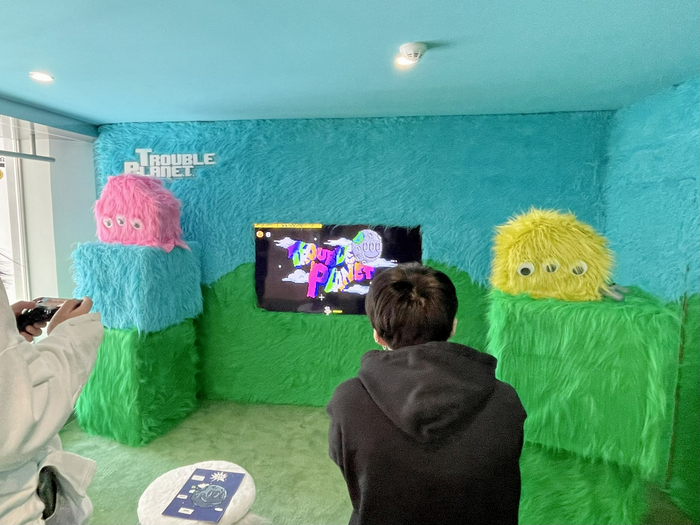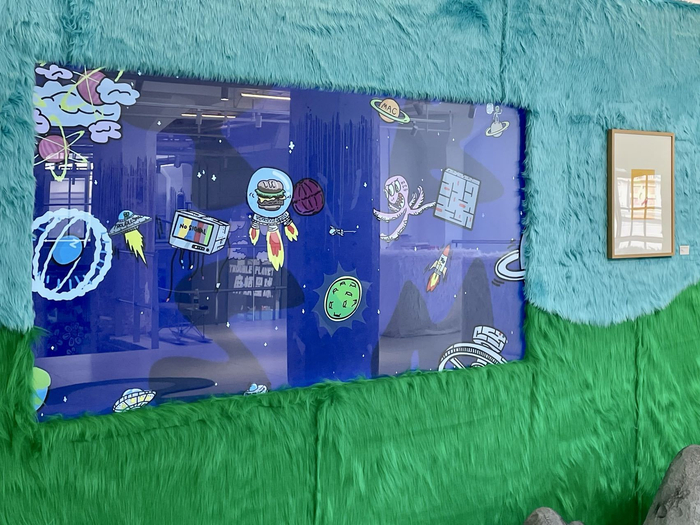 继麻烦宇宙系列《星球起源》的故事后,本次trouble planet 携手 run art work 工作室,推出了同名主题动画《麻烦星球漫游记》,3分多钟的动画在展厅中循环播放。