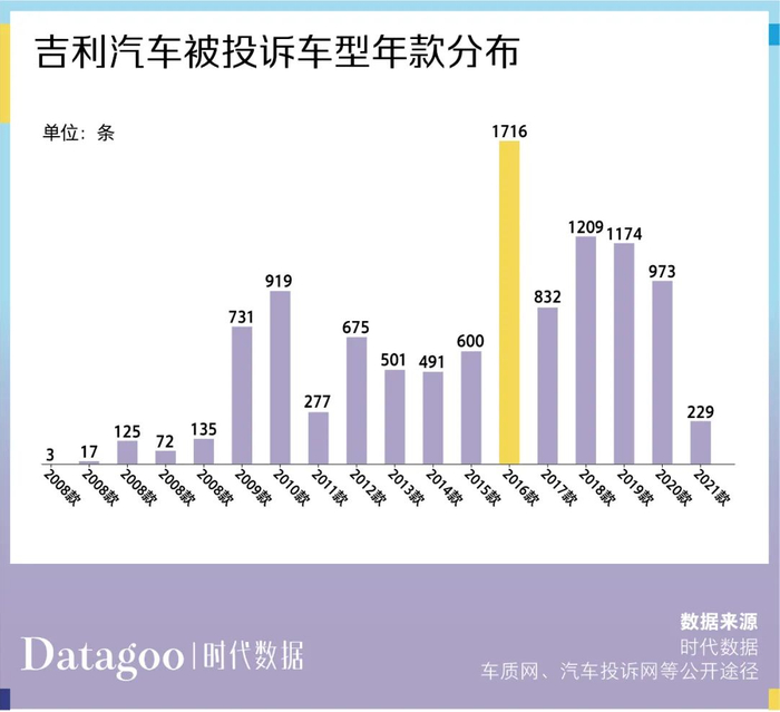 原标题:数据解读近 13 年吉利汽车 11205 条投诉,帝豪投诉量最多