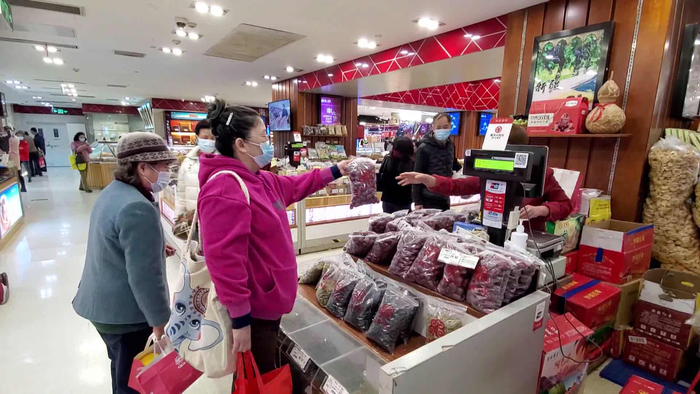 今天中午,记者来到南京路上的食品一店,南北货的柜台人气颇高,不断有市民前来采购,在琳琅满目的品类里头,最受欢迎的要数一些红色系杂粮,红枣、桂圆、赤豆、红米、红皮花生等等,煮粥烧汤都是上佳的点缀,再配上些莲子、白木耳、桃胶等等,就可以做成各式各样好吃的甜品,大冬天吃上一碗温热的汤羹,暖心又暖胃。不少市民都表示,红枣护肝、桂圆补血,都是最适合日常进补的食物。