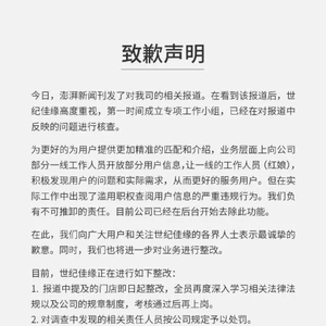 澎湃新闻:世纪佳缘道歉了,我们的卧底稿还没发完