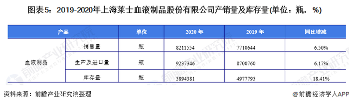 2020年血液制品行业景气度高,公司积极开拓产品销售市场,全年实现血液制品销售量为821.16万瓶,同比增长6.50%。