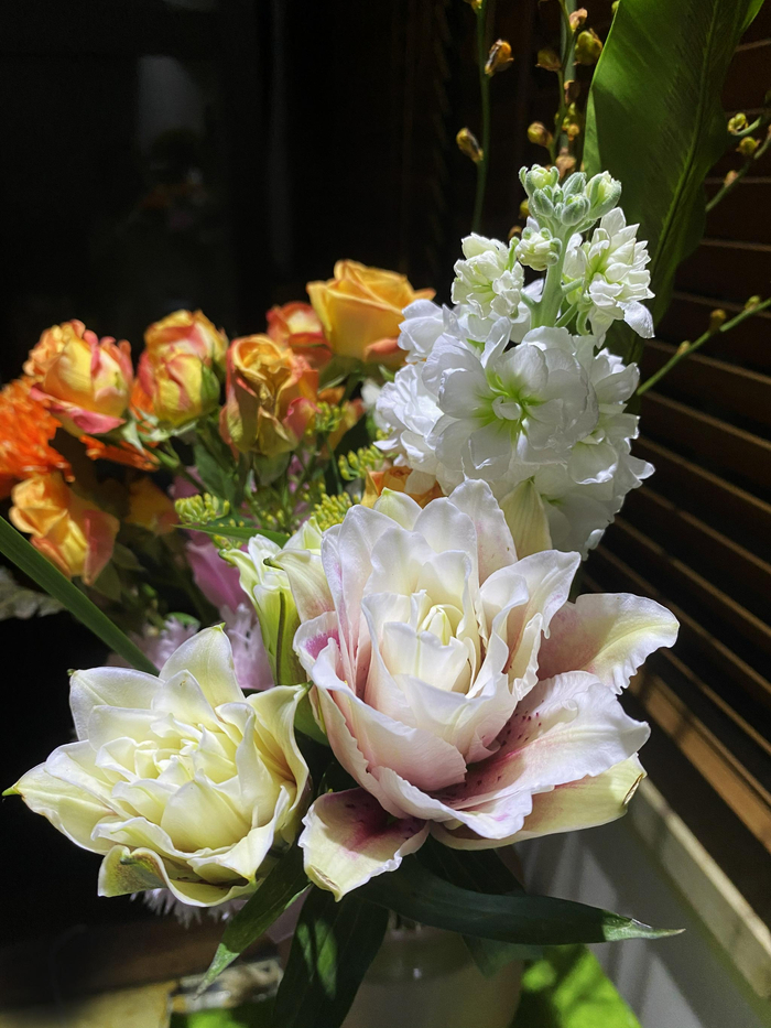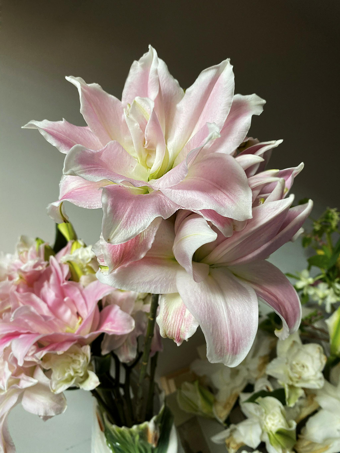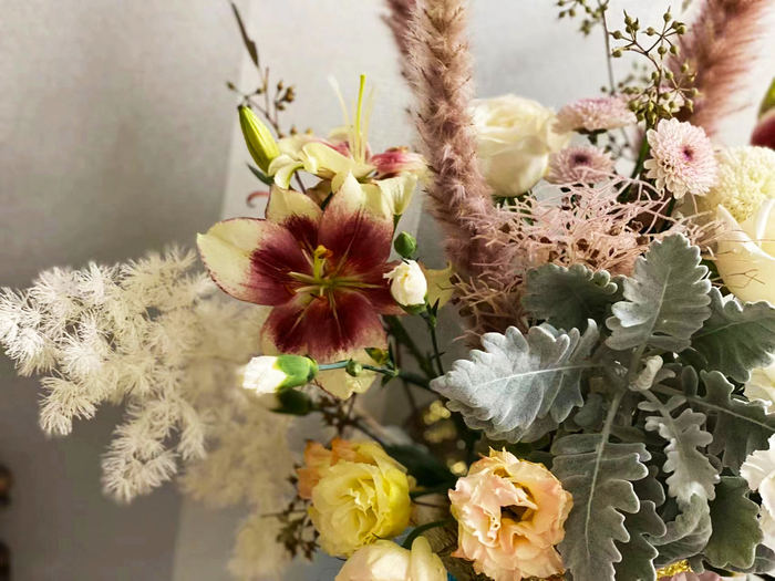 百合花的外表高雅迷人,形态婀娜多姿。在一大把花束里插上两三支百合花有画龙点睛的作用,花艺师也常用它来做点缀。市面上,常见的有香水百合和亚百合等种类,香水百合绽放时发散的浓郁香味有轻微毒性不宜放在卧室和不通风的空间。假如对气味不喜,可以改成无香的亚百合。