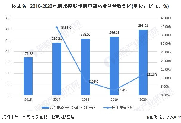 从公司印制电路板业务营收变化情况来看,2016-2020年公司印制电路板业务营收规模呈现连续增长趋势,2020年公司印制电路板业务营收约为298.51亿元,同比增长12.16%。