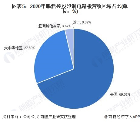 目前,鹏鼎控股的制造基地分布于深圳、秦皇岛、淮安、印度,服务半径覆盖中国大陆、中国香港、中国台湾、日本、韩国、美国及越南等地,可以为全球客户提供高速、高质、低成本及高附加值的PCB设计、开发、制造及销售服务。从2020年公司的营收区域结构来看,公司在海外布局颇广,其中营收占比最高的区域是美国,营收占比约为69.01%;其次是大中华地区,营收占比约为27.30%。