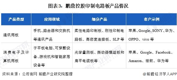 按照下游应用领域不同,公司的PCB产品可分为通讯用板、消费电子及计算机用板以及其他用板等,并广泛应用于手机、网络设备、平板电脑、可穿戴设备、笔记本电脑、服务器/储存器及汽车电子等下游产品。公司的重点客户包含有华为、苹果、谷歌、OPPO等全球大型公司。