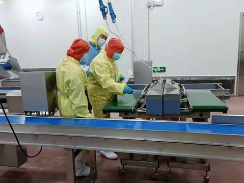“为确保产品的安全和高品质,在当日生产结束后,清洗班组会对生产车间所有的设备、仪器设施、环境、工器具等方面进行彻底的清洗。”日照泰森食品质量保证部在线主管李亮表示,夜间清洗班组的工作时间为8小时,但必须要等到QA和QC检查合格之后才可以下班,“如果检查不合格,那清洗班组就要重新进行清洗,直到检查合格后才可以下班。”李亮说。