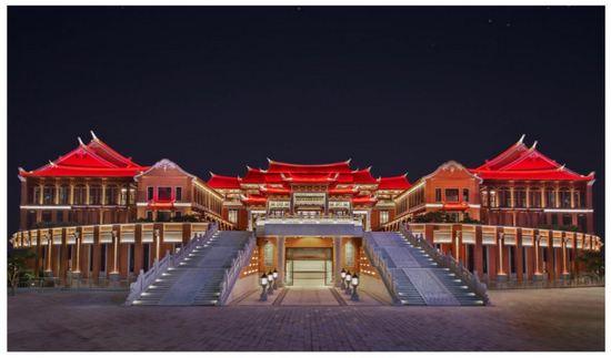 于2018年开工、2020年竣工的世茂海丝馆,占地11482平方米,建筑面积30718平方米。馆内设九厅一院,涵盖两个故宫专题展厅、世茂珍藏展厅、海上丝绸之路展厅、丝路山水地图数字展厅、特别展厅、多功能报告厅、两个贵宾厅以及紫禁书院(泉州分院),同时配套文创空间、文物库房、游客中心等设施。