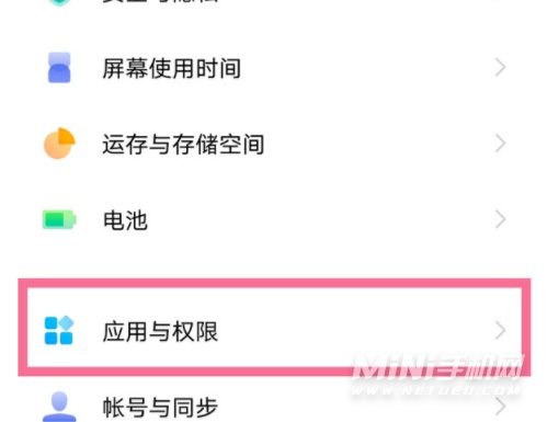 1、在手机设置菜单中点击【应用与权限】。