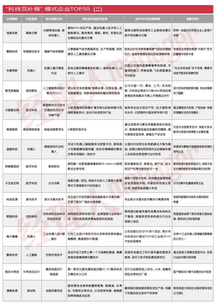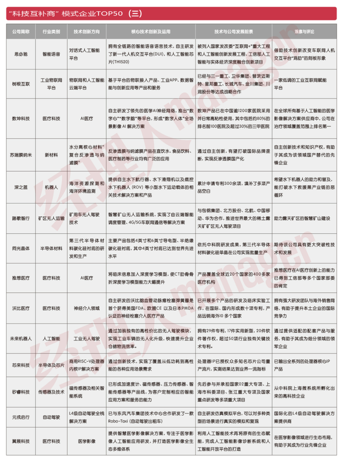 第六种力量:科技互补商模式下的结构实践\n“科技互补商”模式企业TOP50