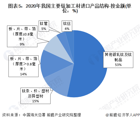 “其他锻轧钛及钛制品”产品的进口占比最高