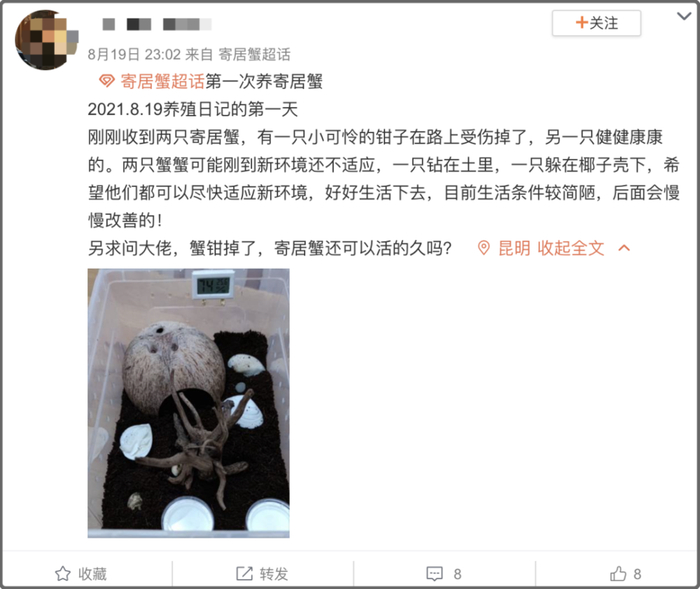 虎嗅温馨提示:寄居蟹在人工环境下很难长时间存活和繁殖,目前市面上的寄居蟹均为野外捕捞,对种群数量有负面影响,不建议购买饲养