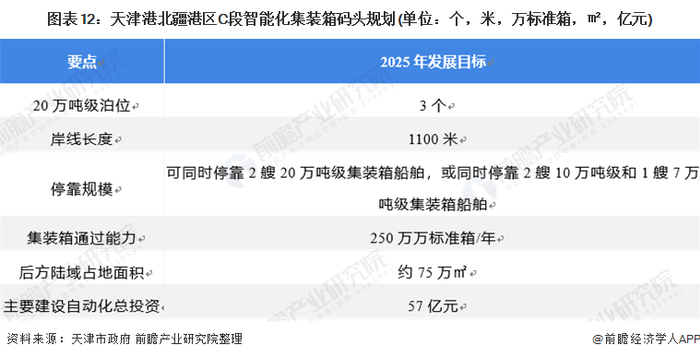 同时随着天津港北疆港区C段智能化集装箱码头的开始运营,项目作为北方国际航运核心区和“世界一流港口”建设要求的重要标志性项目,建成后将是国内智能化程度最高、建设成本最低、运营效率最优的集装箱码头。因此天津港北疆港区C段智能化集装箱码头将规划拟建3个20万吨级泊位,岸线长度1100米,可同时停靠2艘20万吨级集装箱船舶,或同时停靠2艘10万吨级和1艘7万吨级集装箱船舶,设计集装箱通过能力250万TEU/年,后方陆域占地面积约75万㎡,主要建设自动化堆场区、空箱堆场区、维修区、进出港闸口、场内停车场、辅建区及照明、消防、给排水、通信等其他相关配套设施,总投资57亿元。