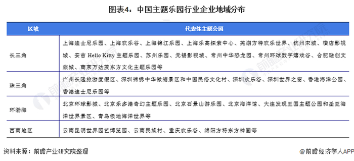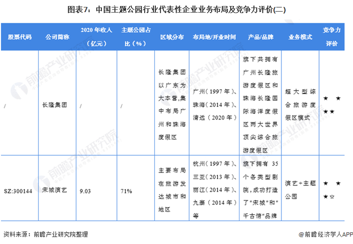 在主题公园项目布局方面,目前国内市场的主题公园主要以经济发达和人口密度较大的地区为主;在主体公园经营业务模式方面,均围绕主题公园发展相关产业。