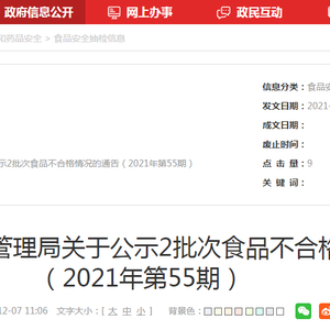 安徽淮南市市场监管局公示2批次食品不合格情况