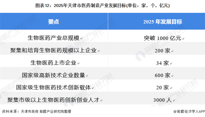 4、天津市医药制造产业发展目标