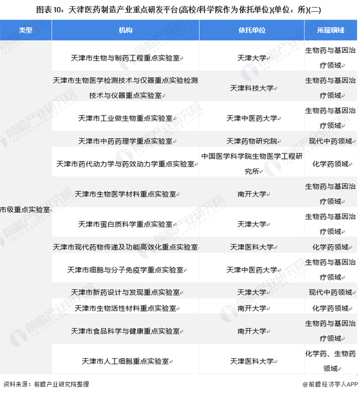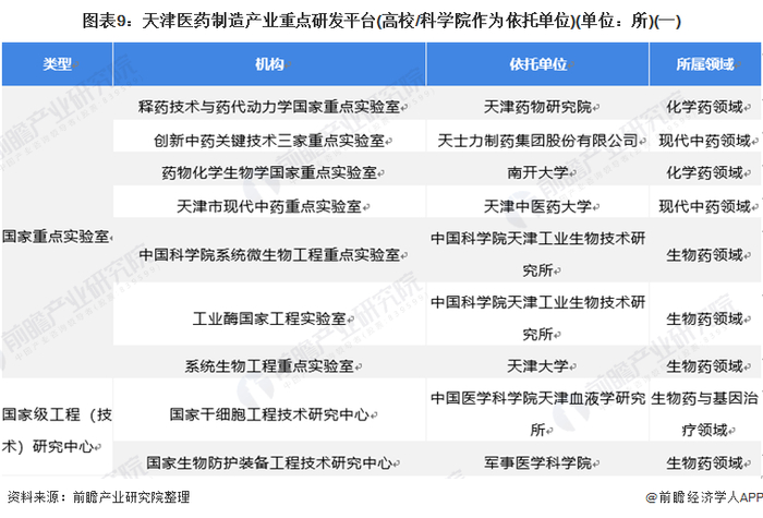 天津市生物医药科研资源相对丰富,现有国家重点实验室、企业技术中心、创新战略联盟等产业创新平台,有南开大学、天津科技大学、天津中医药大学等一批知名院所。其中依托高校/研究所的这种店实验室、国家工程研究中心和市级重点实验室分别有7所、2所和15所。