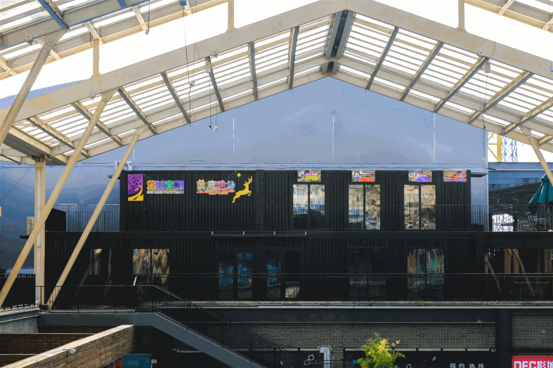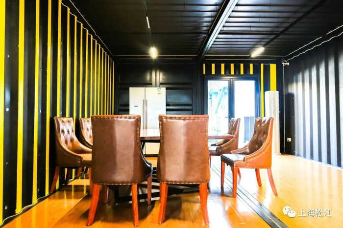 首先映入眼帘的就是黑色集装箱内的乒乓馆。馆内共有6张球台,后方还有发球机等配套设备。