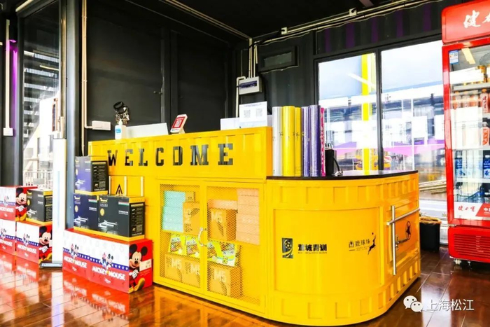 二层则是休息区,供市民朋友放松休息,还有一个小露台,墙上是霓虹灯制成的招牌,工业风十足,适合拍照打卡,同时也让运动也变得多彩。