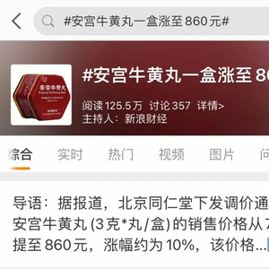 “安宫牛黄丸涨价一盒860元”