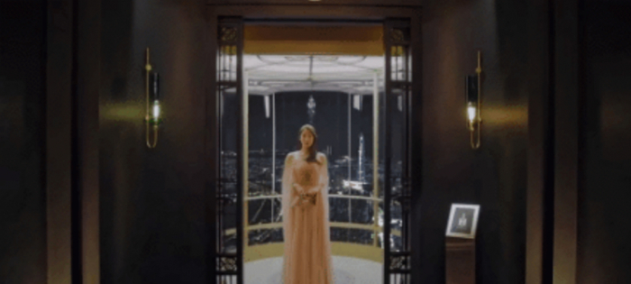 在《顶楼》的剧照里能看到,剧中的这座100层的豪宅大楼,从各个角度的门窗看出去,都是首尔的繁华夜景和车水马龙,是稀缺的城市景观资源。当然,为了让这栋楼外观看上去更加奢华,剧组使用了CG特效加成。