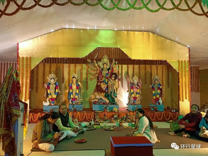 赶到大吉岭正值印度的杜尔迦节,广场上已经布置好杜尔迦降魔的场面。