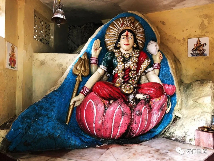毗湿奴不远处供奉着的一位女神,坐在莲花座上,大概率应该是毗湿奴的配偶神吉祥天女。但与我印象中的还是有很大差距。