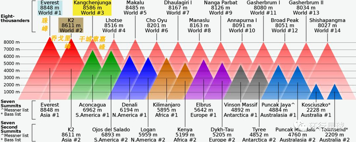 我实在是太喜欢八千米级的雪山了,干城章嘉在14座八千米雪山里排名第三。说明一下,世界公认的8000米雪山一共就14座,但这14座指的是14座雪山群,比如干城章嘉五峰就是四座峰超过8000米,珠峰和安纳普尔娜峰都各有三座超过8000米。图:wiki