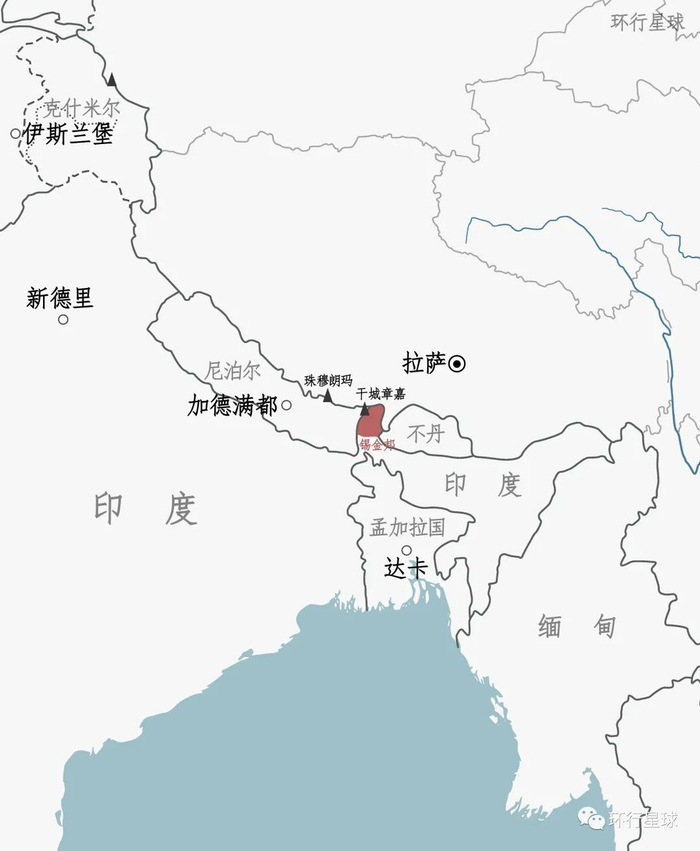 尼印的界碑,左边尼泊尔,右边印度,前方锡金