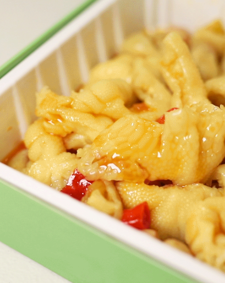 饥肠辘辘的夜晚,我们的胃需要被油亮丰腴的大肉主食填满;而闲暇的磨牙时光,一个个按捺不住的深夜嘴馋时刻,全然是边角料的主场,尤其一盒方便又酸爽的泡椒凤爪。齿唇挑弄,满满的胶质感带来咀嚼的快感,小酸小辣里获得一种极致的口舌之欢。