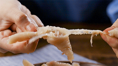 一桌人无论是谁拆开一袋泡椒凤爪,一圈人的口水都能被蹿进鼻子里的辛辣气勾搭出来,眼巴巴望着,直至袋子传到自己手里。挑出一块迫不及待的放进嘴里,在牙齿的挤压下泡椒水肆意奔走,胶原蛋白带来咀嚼的满足,Q弹夹杂鲜爽。而且就算吃上半小时,也不过几两“胶原蛋白”和一点点钙,完全没有吃撑或者体重增长的负担。