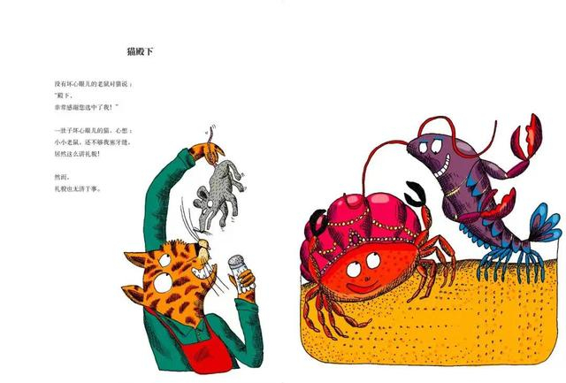有的家长喜欢买色彩绚丽的书给孩子看,以为这就是生动,其实是误解。表面的华丽并非插图的目的,好的插图要贴切地表现故事内容。“对于图画书的插图来说,重要的不是色彩的丰富,而是有没有充分表达故事内容的表现力。即使是清一色的黑色、褐色,只要精彩地描绘出故事的世界,孩子们就可以通过插图来理解故事的内容,想象故事世界。”([日]松居直:《我的图画书论》)色彩绚丽不等于画面丰富生动,有些图画书,虽然色彩是黑白灰简单的组合,比如日本绘本“鼠小弟”系列,但插画与故事内容互相吻合,就很受小读者欢迎。