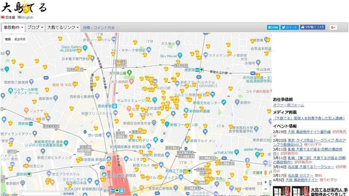 网站上,黄色火焰代表了凶宅位置,一眼看去,几乎整个日本都被黄色火焰覆盖了。随着事故屋越来越多、房价越来越高,事情也有了微妙的变化。囊中羞涩的日本年轻人们发现,阿飘什么的是没见到,但和市面上的房屋价格相比,凶宅的租金与售价可是肉眼可见便宜了一小半甚至一半。