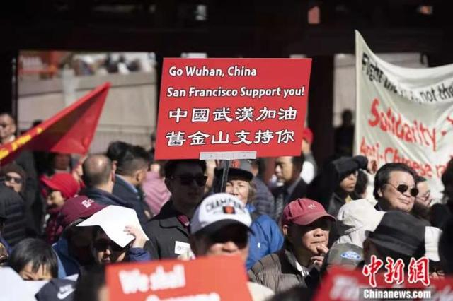 2020年2月,多家华人团体在美国旧金山联合举办反歧视游行,反对因新冠病毒而歧视华裔的行为,支持中国及全球的抗疫行动,并呼吁支持中国城的经济。中新社记者 刘关关 摄