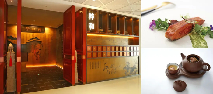 今年10月下旬,还开业了北京同仁堂药膳的第一家旗舰店,推出同仁堂粹和养生宴,主要特色菜有桂杞三文鱼、同仁大山楂丸等。