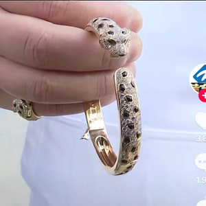 这款卡地亚手镯材质包括18K玫瑰金、缟玛瑙、祖母绿和钻石,价值413000元。练先生介绍,本来想要定高级珠宝的,但是后来被店员质疑,就不开心了。