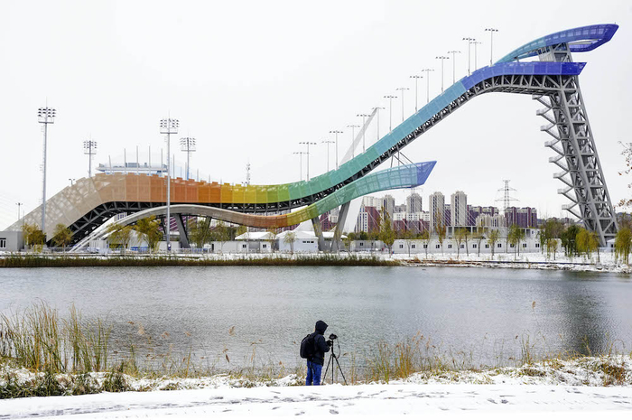 首钢滑雪大跳台是大跳台运动在全球的第一座永久跳台,也是冬奥历史上第一座与工业遗产结合的比赛场馆。造型设计的灵感来自于敦煌“飞天”形象。跳台的钢结构设计还预留了未来应对不同赛事需求变化的可能性。 视觉中国 图