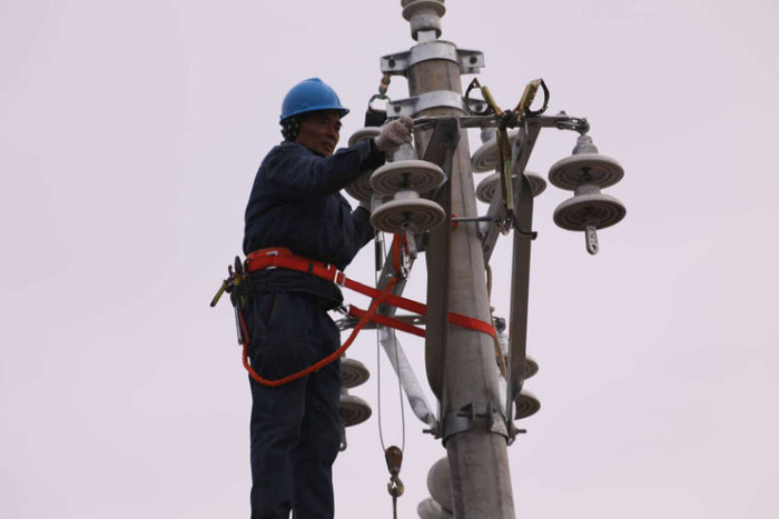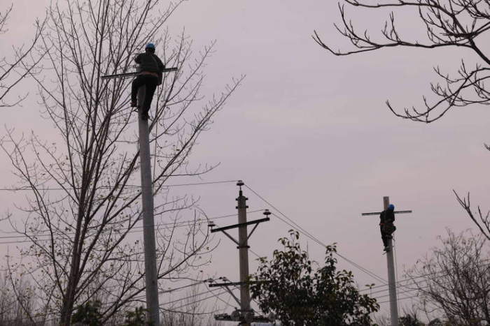 12月7日,寒风呼啸,室外气温接近零度。河南洛阳洛宁供电公司在东宋镇东宋、丈庄、大宋、小宋村等17个村庄,方圆近40平方千米的土地上,组织百人会战对10千伏东洼线及3条分支进行配电线路大型综合检修。