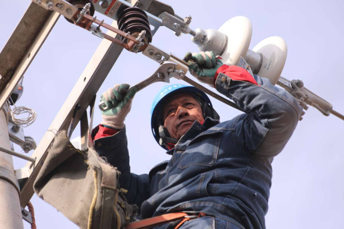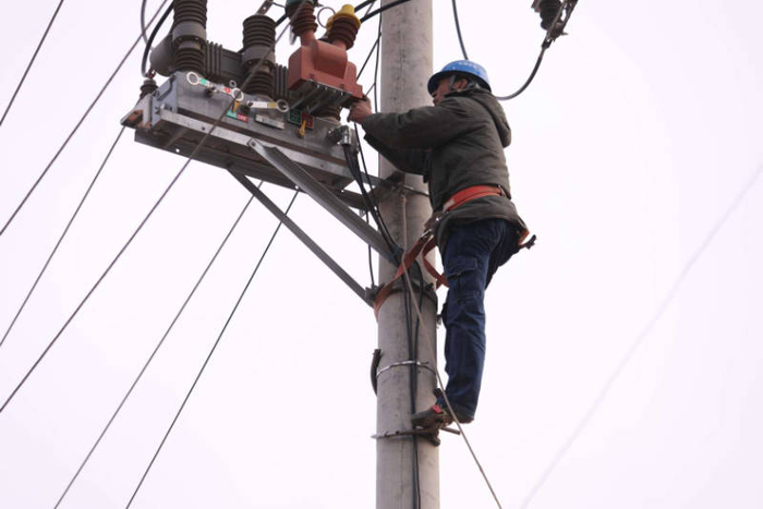 7点整,路灯熄灭,东宋街再一次进入夜色之中。检修工作正式开始,已等候在现场的身着国网绿、头戴安全帽的施工人员,验电、挂接地线各种机器、车辆轰鸣声响起,纷纷开始立杆、登杆、拉线、安装横担、开关、刀闸、领克、电缆、引流线和开关等工作。公司领导带队,安监、运维、营销、供电所、产业单位领导纷纷驻守工作现场巡视检查,确保作业方法、现场安全、优质服务等各项工作有序推进,确保此次检修工作顺利安全按时完成。