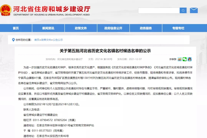 近日,河北省住建厅官网最新发布关于第五批河北省历史文化名镇名村候选名单的公示,拟将承德市丰宁满族自治县凤山镇等4个镇、石家庄市井陉矿区贾庄镇贾庄村等138个村列为第五批河北省历史文化名镇名村候选名单。跟小编一起来看↓↓↓