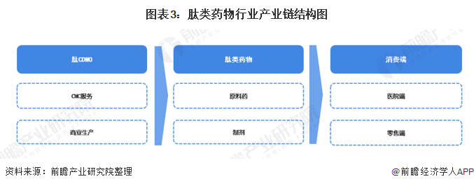 当前,肽类药物行业贯穿新药发现、研发、开发的全过程,伴随新药发现、研发、开发全流程提供一体化、全周期服务,因此肽类药物行业不存在明显的上游关联关系。而CMO/CDMO行业为肽类药物研发环节的直接下游环节,是产业链自前端药物研发向后端药物生产的自然延伸;肽类药物行业下游一般为医药行业产品的常规参与者,即国内外药企、其他医药研究机构等。