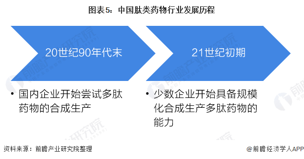 20世纪90年代末,国内企业开始尝试多肽药物的合成生产,然而受技术水平、硬件设备等的限制,我国制药企业还难以实现大规模的多肽药物生产,直到21世纪初期,随着各项技术水平及配套硬件设备逐渐成熟,国内少数企业开始具备规模化合成生产多肽药物的能力。由于多肽药物的技术壁垒相对较高,相应的制备成本和市场价格也相对较高,一定程度上影响了多肽药物在国内的大规模临床应用。
