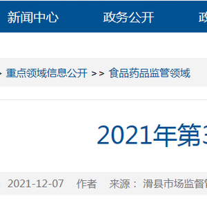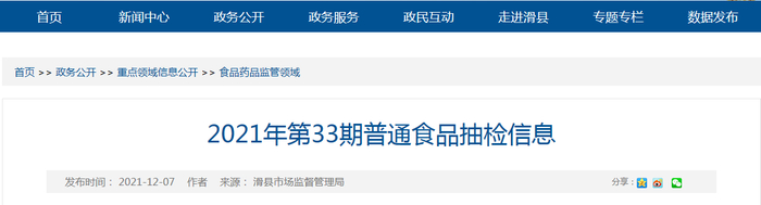 河南省滑县市场监管局发布2021年第33期普通食品抽检信息