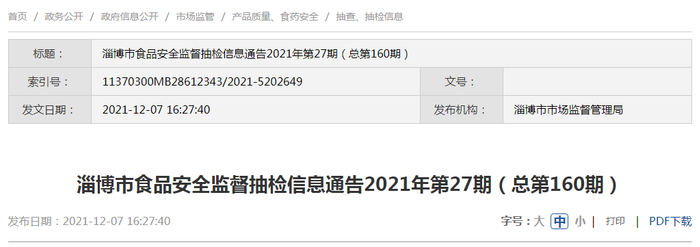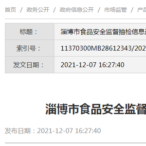 山东省淄博市市场监管局抽检201批次食品 1批次不合格